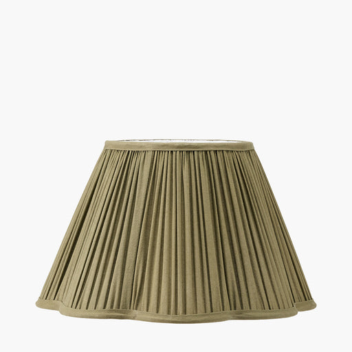 The Abigail lampshade is a beautifully crafted mushroom pleat, scalloped design in a rich olive hue with matching self-colour binding. Its elegant ...