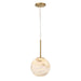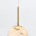 A solid block of alabaster stone has been cored and turned into a sphere, the naturally occurring deposits of iron oxides in the soft calcite stone leave trails of clouding and veining. As a result, each individual shade is a unique beauty to behold. This fitting is height adjustable and available in two sizes, there is a matching cluster pendant available in this collection.