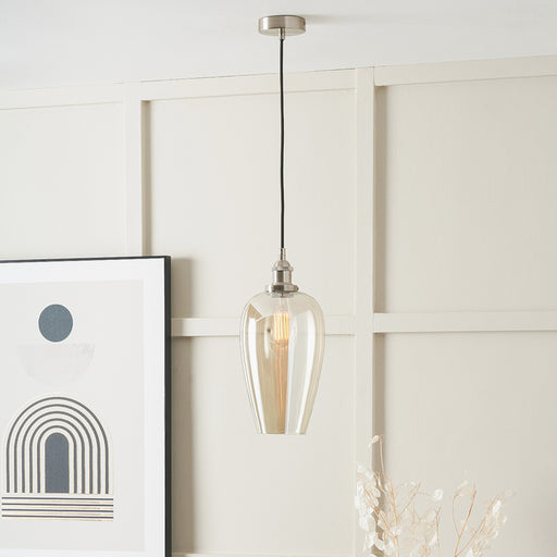 Melsa clear outer glass pendant is part of a mix and match range that includes a variety of shades in contrasting colours; clear, chrome, bronze, c...