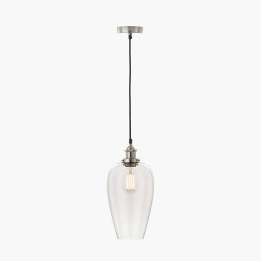 Elevate your space with the our Magali Antique Silver Metal and Glass Pendant. This stunning, sophisticated glass pendant, with antique silver meta...