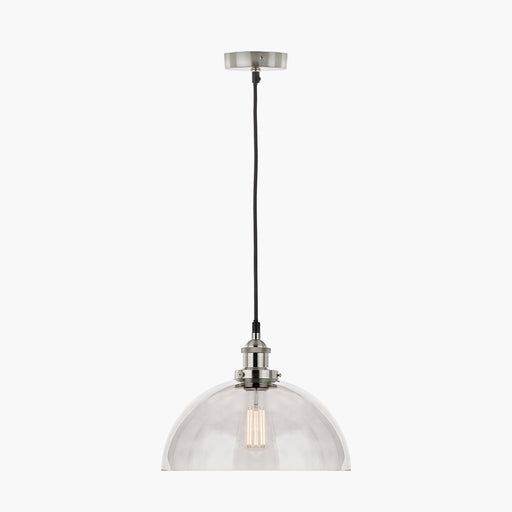 Elevate your space with the our Magali Antique Silver Metal and Glass Dome Pendant. This stunning, sophisticated glass pendant, with antique silver...