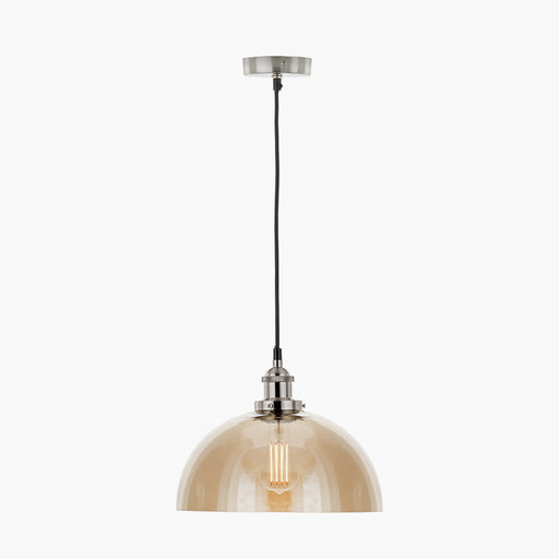 The Miriam Single Pendant is a sleek fitting made with a golden aluminium base and an amber blown glass shade; or a chrome base and smoked glass sh...
