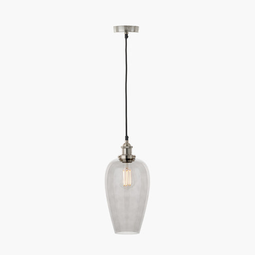 Elevate your space with the our Magali Antique Silver Metal and Glass Pendant. This stunning, sophisticated glass pendant, with antique silver meta...