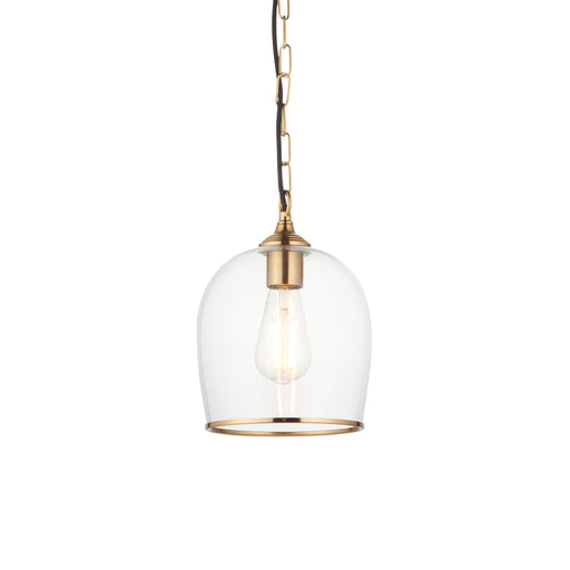 Refined and versatile, this single pendant light in a warm brass finish, features either a clear glass dome accented by a classic metal edge, or a ...