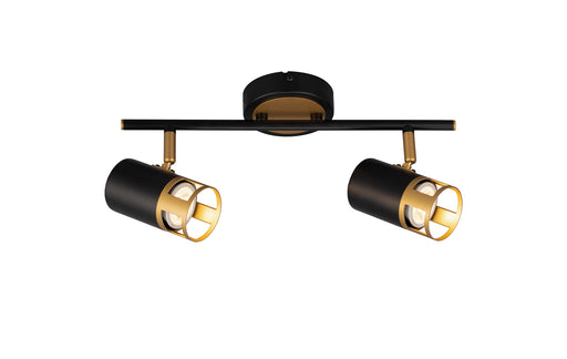 A double wall spotlight in matt black with decorative gold cable covers. The interior surface of each shade is finished in gold. This fitting has 2...