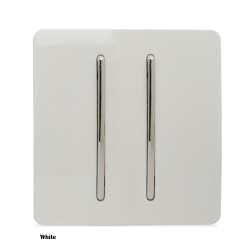 2 gang, 2 way LED dimmer switches available in a vast range of colours to cater for any colour scheme and décor. Elegant, seamless design, retro re...