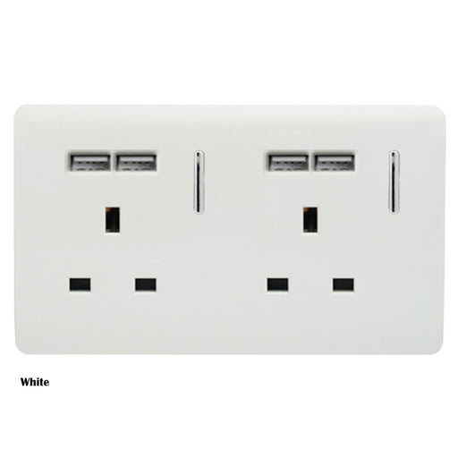 4 gang, 13 amp socket with 4 USB ports (4 x 2.1 mah) available in a vast range of colours to cater for any colour scheme and décor. Elegant, seamle...