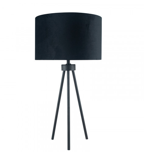 View full detailsThis contemporary tripod floor lamp is a simple yet elegant style with slim legs and metal finish. The shade is a luxurious velvet lined in a matc...