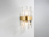 The J'adore wall light is a stunning dome shaped light which features a gold metal band and striking faceted glass rods. This light is dimmable if using dimmable lamps. Matching halo pendant, linear bar and table lamp also available.