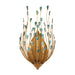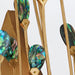 The teardrop-shaped Pavona Wall Sconce is inspired by birds and feathers. The fixture flows gracefully and evokes the elegance of a peacock’s tail. Beautifully crafted from steel in a contemporary gold finish, the nature-inspired piece is ornamented with double-sided, highly polished New Zealand, Aqua coloured Paua Shells. This is a painstaking piece to realize, as the rods are bent by hand into the undulant composition and the luminous shells are hand-placed. The turquoise and gold chandelier will bring lively color to an interior thanks to the variations in the iridescent hues within each of the shells. Dimmable and matching ceiling pendant also available.