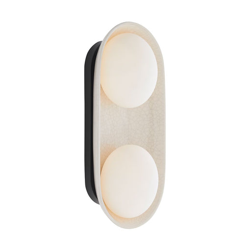 This simple, versatile form marries ivory stained crackle-glazed ceramic shades and softly frosted opal lights for a versatile, textural sconce tha...
