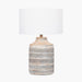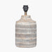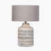 Finished in a grey wash this lamp gives a softer rustic style. Handcrafted in India, the base is made from mango wood and hand-carved with an organic stripe design giving each one a unique look. Finish with a neutral grey or ivory shade to create a coastal feel to your decor.