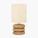 The Hazel mango wood table lamp makes a statement with its organic stacked pebble silhouette. A subtle cream lampshade complements the stunning natural wood. Made in India this lamp makes a perfect statement piece, ideal for any Scandi inspired room.