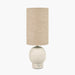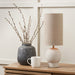 This sandstone table lamp makes use of simple curves and subtle texturing. Topped with a strikingly elegant tall linen lampshade and neutral colour palette will add a soft calming ambience to your room. Handmade in India the Lawlor table lamp complements any Scandi-inspired space.
