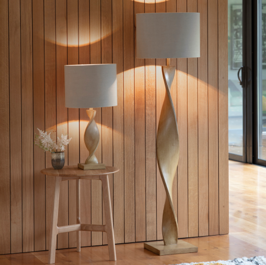 The Alba is a beautiful set of table and floor lamp, in a stunning polished oak, and natural linen shade. Perfect for the home that love a luxury reclaimed vibe.