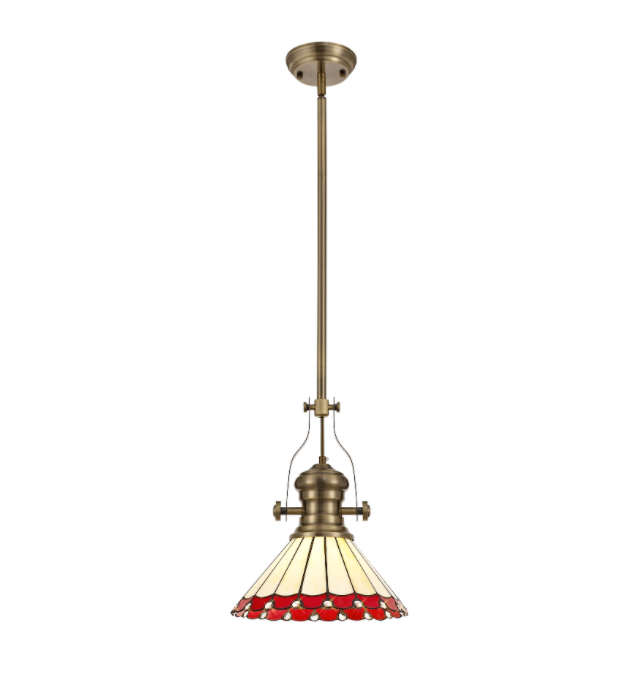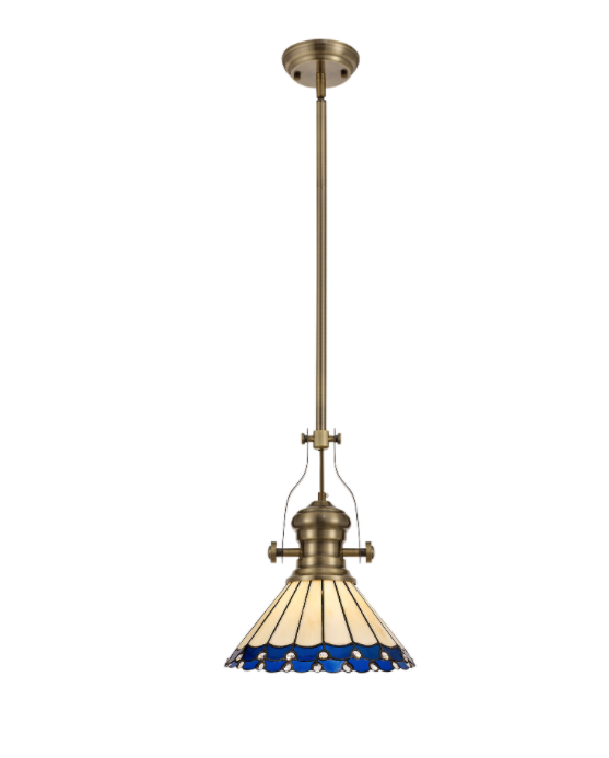 The Academy uses traditional Tiffany shades with a modern twist. The cream glass shades are set off with a vibrant colour finish to the ends. Grey shades come with a polished nickel frame, and the Blue and Red shades are complimented with an antique brass frame.