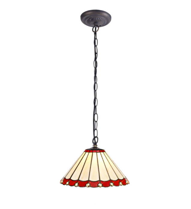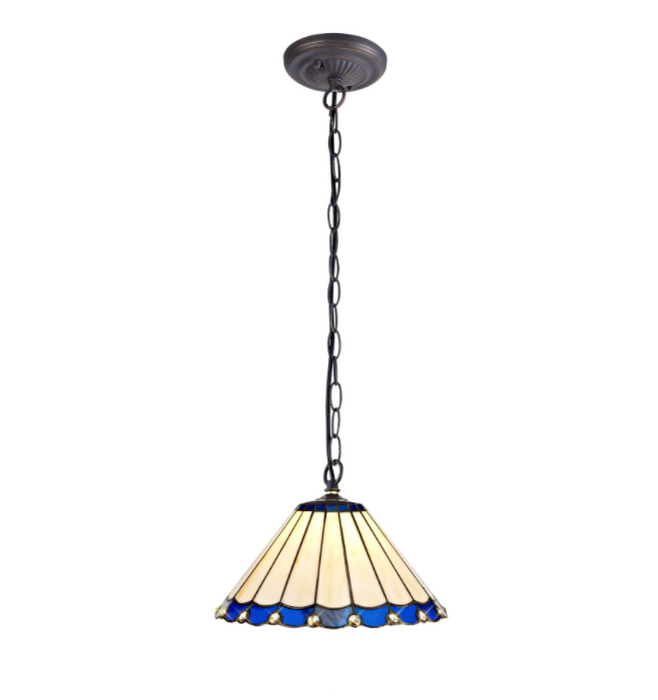 The Academy uses traditional Tiffany shades with a modern twist. The cream fan-like glass shades are set off with a vibrant colour finish to the ends.