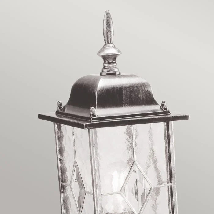The Albus outdoor pedestal features hand leaded glass panels with a black silver finish. Multiple options in this large range.