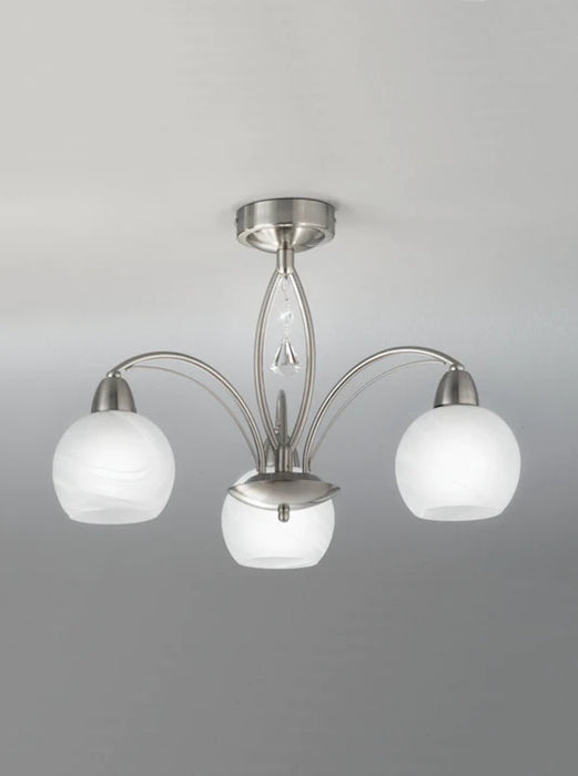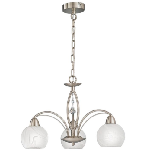 The Alice fittings with alabaster effect glasses and a faceted  crystal drop is the perfect combination of modern meeting traditional. The fittings are supplied with chain suspension which can be easily be converted to flush fittings suitable for low ceilings. This fitting is Class 2 (Double Insulated).