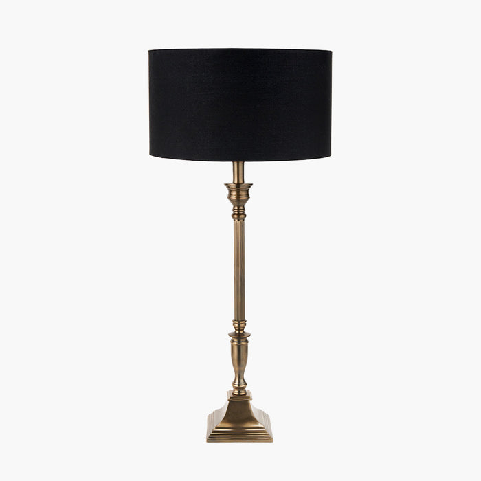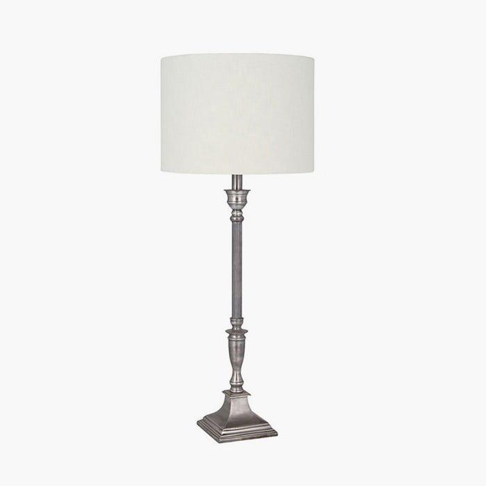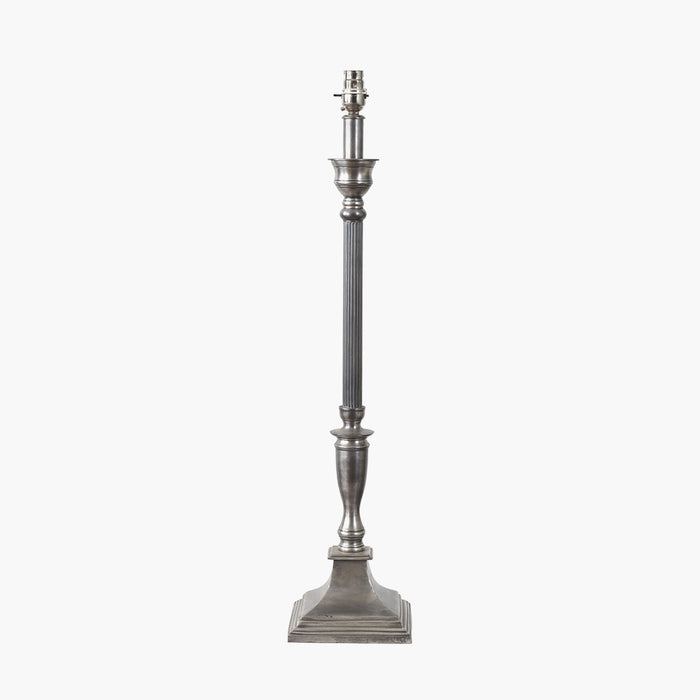 Traditionally styled, this lamp base with ribbed detail on the column, will add a hint of the colonial to your look in either an antique brass or antique silver finish. Style with either a cylinder or a tapered shade from our range. Also available in a floor lamp.