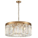 Who said crystal had to team with chrome. The Amelia shakes things up, with its stunning circular brushed brass or black framed pendant with a double row of crystal columns. Luxury fittings, for luxury homes.