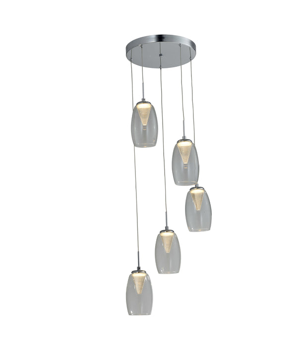 5 Light: Diameter 38cm / Height 40cm- 120cm / 5 x 5w / 4000K / 975 Lumens/ Dimmable