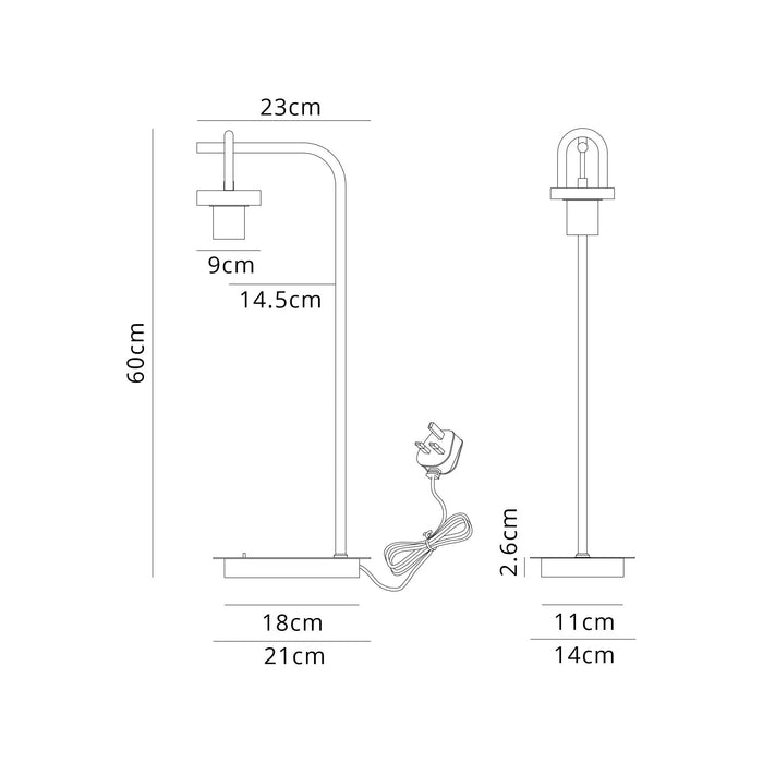 Height (Excluding shade): 60cm / Width 14cm / Depth 23cm / 1 x E27 lamp (required)