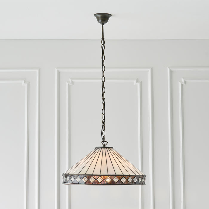 The Astoria is a beautiful collection of Tiffany lights - with an elegant Art Deco inspired look.  The subtle muted pearl-white and bronze glass colours, and crisp lines are off-set with the deep Bronze fittings, make for a wonderful finish all round.   This fitting is Class 2 (Double Insulated)