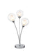 In chrome finish with clear glass spheres which have a smaller opal sphere inside. There is a switch on the base. Suitable for use with LED G9 lamps only.
