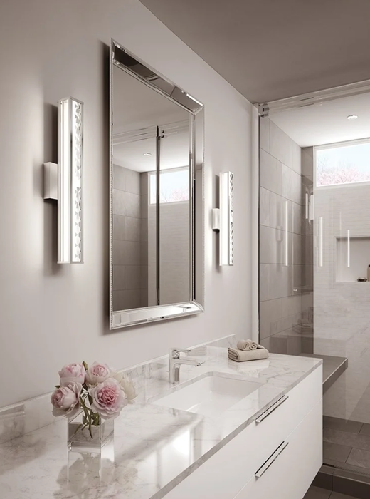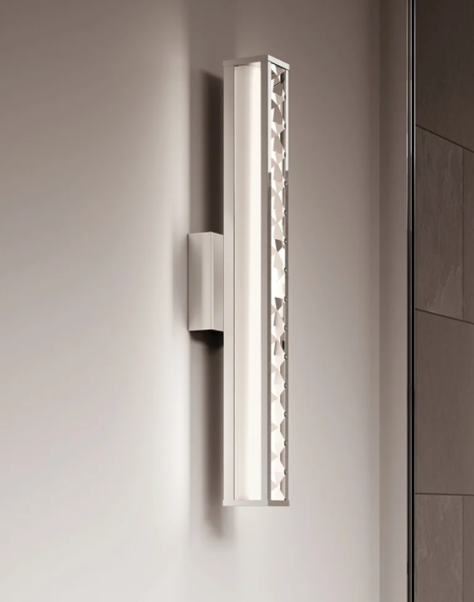 Inspired by fine jewellery, the Aubry LED vanity light uses faceted crystals to enable dramatic reflection of light, softened by a white diffuser behind. Add a touch of luxury to your vanity area. And enjoy all the glamour of getting ready. Polished chrome finish IP44