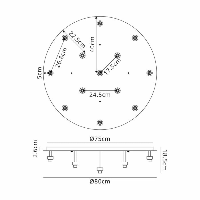 13 LIGHT: Height 18.5cm / Width 80cm / 13 x G9 required