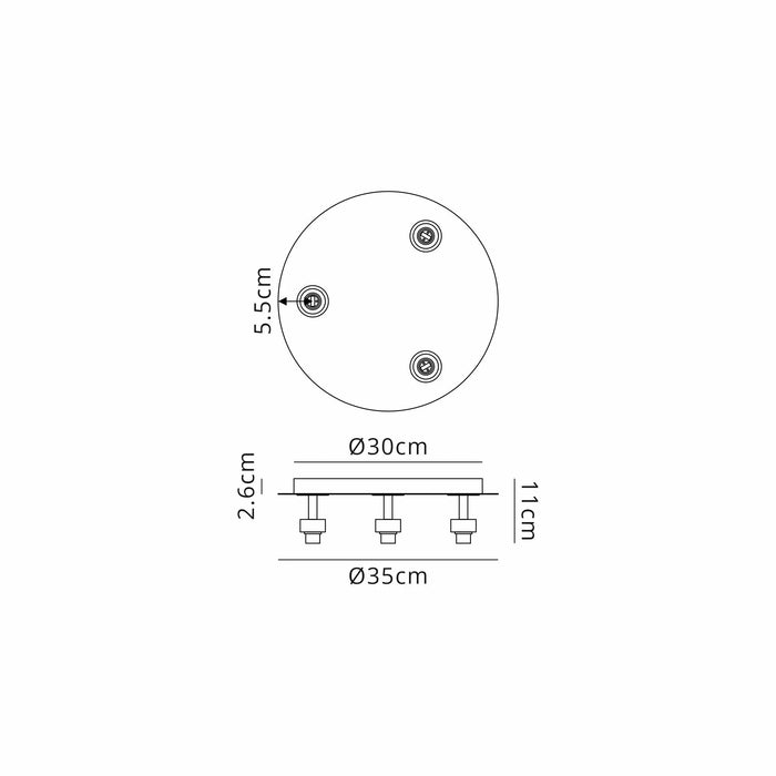 3 LIGHT: Height 11cm / Width 35cm / 3 x G9 required