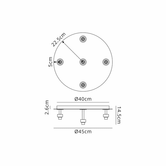 5 LIGHT: Height 14.5cm / Width 45cm / 5 x G9 required