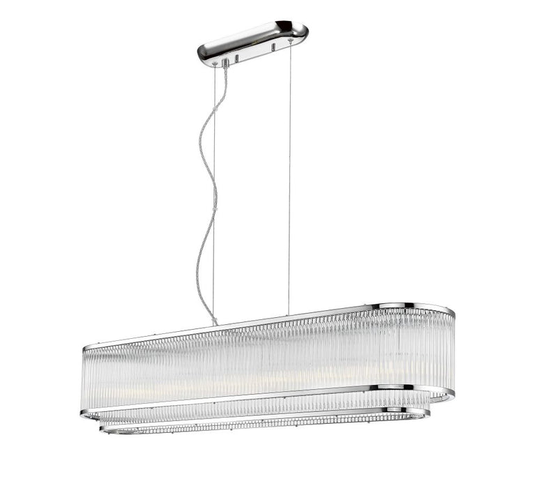 Length 108cm / Width 24cm / Height Min - Max Drop 30 - 150cm / 7 x E14 (required)