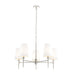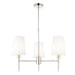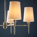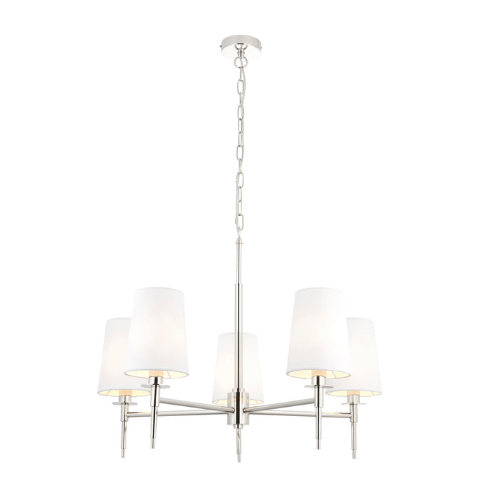 Bishop is a charming collection of lights that offer style and functionality. They have a traditional look with a modern touch. The 3 light features a telescopic arm to adjust height. The 5 light features height adjustable chain. Finished with soft vintage-white tapered shades. Available in a bright Nickel or Matt Gold colour finish.