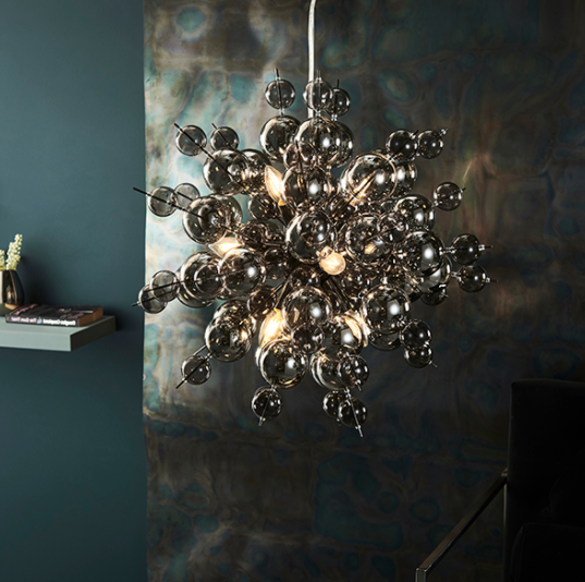 The Blaise is an Exclusive Collection - The striking design of the Blaise will not only provide a great light once illuminated, it also makes a wonderfully centre piece to your room. The intricate glass is available in either a Chrome & smoked glass or copper mirrored finish. Perfect for homes creating artistic wow-factors. This fitting is Class 2 (Double Insulated)