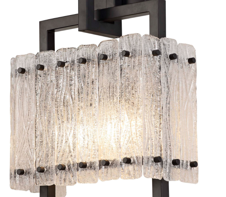Bronx is another ingeniously invented decorative concept across a comprehensive range of pendants with matching wall, table and floor lamp. Rectangular pieces of glass with a crystallised frosted pattern are held onto the frames with black caps to match the colour of the frame. The fixings are positioned at either end of the glass so the theme appears as a reimagined xylophone. These unique features add a dramatic statement to their given setting.
