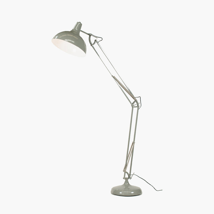 The classic design of the industrial task lamp is an oversized floor lamp. Quirky yet functional, this floor lamp has an adjustable arm and head for directional lighting where required. Finished in a matt black, brushed brass (gold) or matt grey, you can make a statement in any room in the home with this iconic product.
