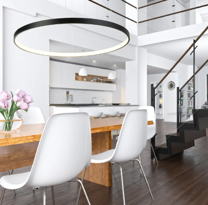 Make a stylish statement with the over-sized LED Carpenter halo pendant - The impressive 120cm diameter, and switchable colour temperature option (warm to cool) are also paired with the ability to dim - to ensure the perfect light for your modern space. Fitted with a white ceiling cap to blend seamlessly into its surroundings.