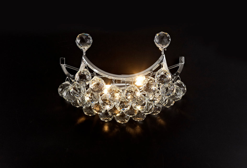 An extravagant stunning Polished Chrome fitting filled with an abundance of 40mm Asfour crystal spheres. The basket of crystal spheres has been designed so that every single crystal is making contact in order to create a continuous sheet effect. This range is dimmable if using dimmable lamps.