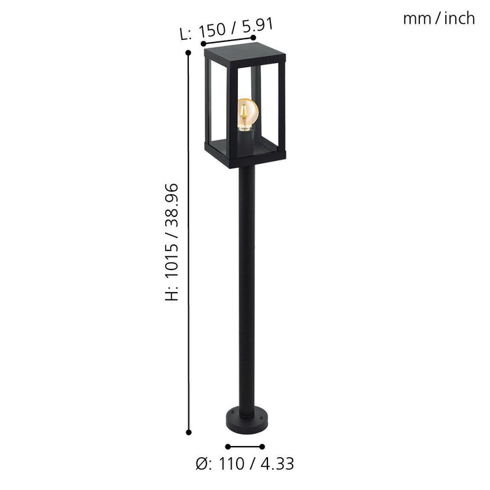 The Mike Outdoor Floor light light has a black metal post and black metal frame with clear glass panels. The panels give a direct view of the lightbulb inside. With protection against spray water, the light is suitable for outdoor use and adds an outstanding finish to modern outdoor areas.