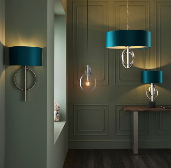 The Darius is an Exclusive Collection. The Darius is an absolutely stunning range of lights, designed for an extra luxury touch to your home. The frame is a beautiful Antique Silver Leaf - Finished with a teal or mink shade.