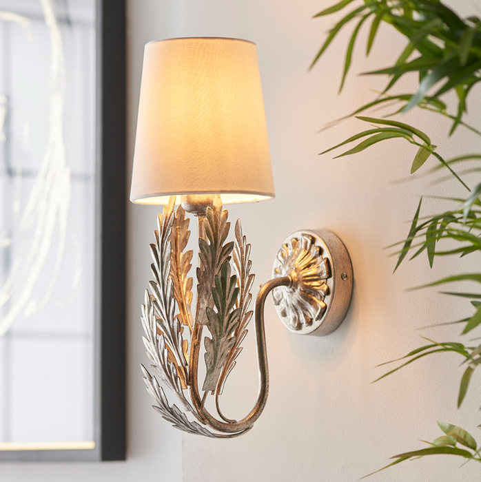 The Dartmoor is a beautiful collection of luxury lights - finished in Gold or Silver leaf. The sculptural leaf-shaped frame adds a unique feature to you room. Complemented by a beautiful Ivory cotton shade, included.