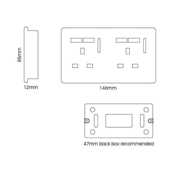 Height 85mm / Length 146mm / Width 45mm / 13 Amp / Class 1 / (45mm Back Box Required)