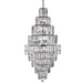 Empree is a spectacular, glittering 13 light tiered chandelier with stunning rectangular crystal prisms hanging symmetrically from a modern, chrome finish frame. Create a scintillating, jewellery-like effect with this impactful piece as the main feature in your living area or dining room