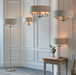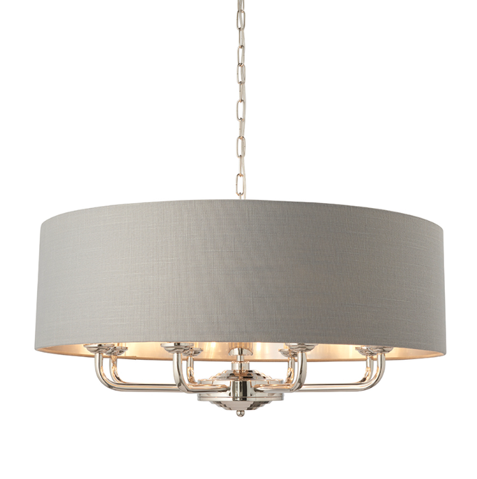 Satin Silver frame comes with a Natural Linen shade & Brushed Metallic liner