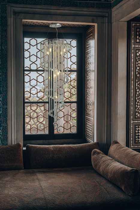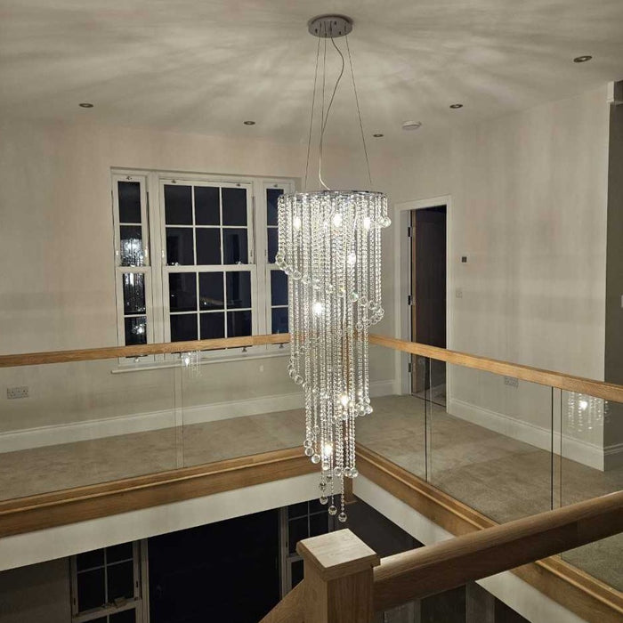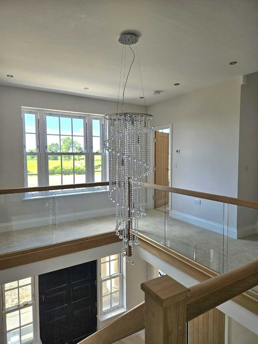 A comprehensive range of crystal fittings with a mass of Asfour crystal at different levels. The wall light in this collection boasts a neutral design to compliment a vast range of crystal chandeliers. This XL fitting is height adjustable and is dimmable if using dimmable lamps.