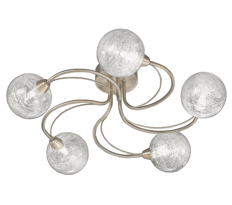 Filled with layers of spun glass, the shades of the Gusto fitting are stunning to behold. The curves of the arms give a modern feel, with the options for Antique Brass finish or Satin Silver to suit an array of Decor.