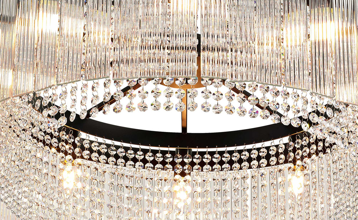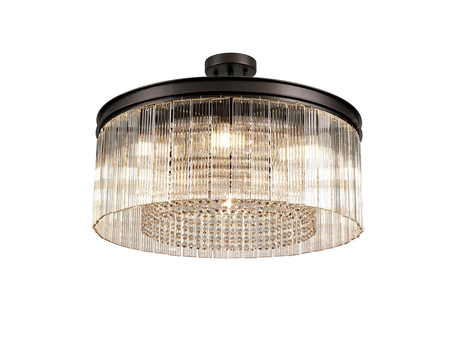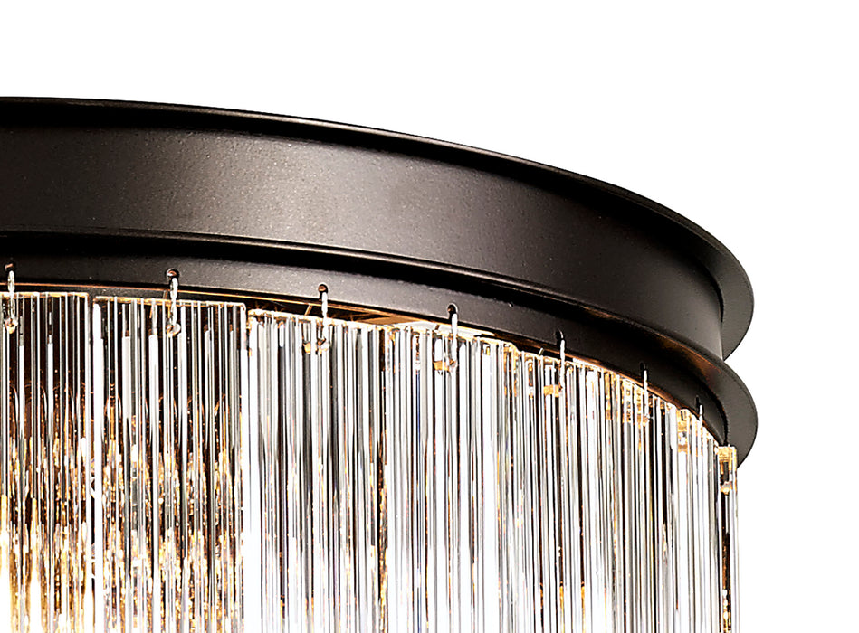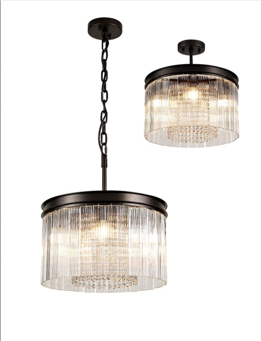 Traditional fittings form this comprehensive collection Harwood, the dark brown oxide colour finish of the framework is a more time-honoured tone for classic lighting styles. The solemn integrity of these models are maintained by the chosen crystal and glass pieces. A tier effect is created by alternating rings of long rectangular glass pieces with a ridged effect and strands of high quality, clear crystals buttons.