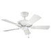 The Hawker 5 arm ceiling fan is suitable for indoor or outdoor use. It has a matt white finish and has a pull cord to turn on/off. IP44 Rated for External or bathroom use.